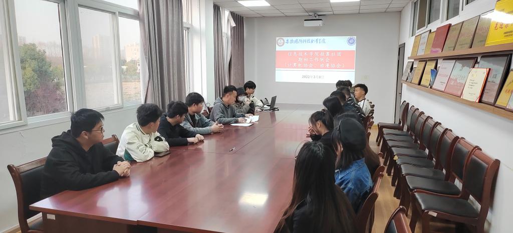 本网讯(信息技术学院 孙颖凯)为加强beat365学生团体指导教师管理,强化社团工作规范性,信息技术学院于3月8日下午5点45分在知行楼304会议室召开学院挂靠社团期初工作例会。动漫协会指导老师沈扬、计算机协会指导老师孙颖凯以及动漫协会、计算机协会主要学生干部参加了会议,会议由孙颖凯主持。