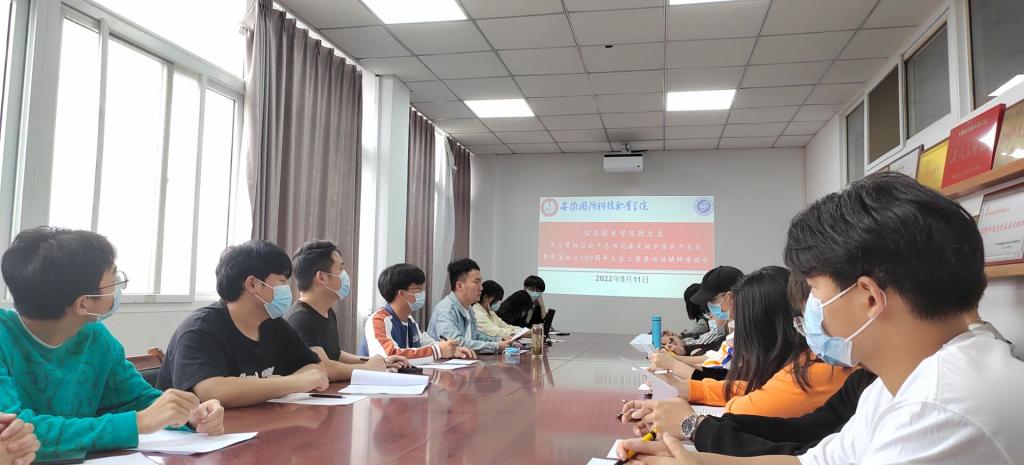 本网讯(信息技术学院 孙颖凯)为深入学习、贯彻习近平总书记在庆祝共青团成立100周年大会上的重要讲话精神,信息技术学院团总支于5月11日中午在知行楼304会议室召开座谈会,由学院团总支书记孙颖凯带领学院主要学生干部共同学习习近平总书记的重要讲话精神。