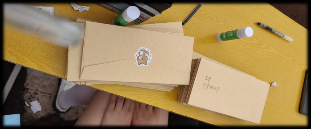 活动接近尾声时,同学们将自己的感情写进信中,并托付给动漫协会工作人员,工作人员进行信件清点,让活动井然有序的进行。