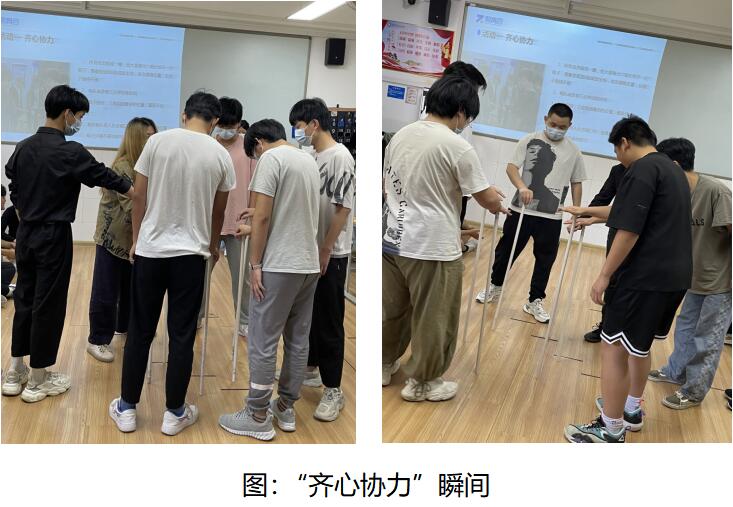 5月16日-5月20日,张媛媛老师在每个班的职素课堂均开展了系列活动。每个班自愿分成5组,每组8人。活动从“齐心协力”开始,各组派6名成员出场,依次调换位置,且棍子保持不倒。若棍子倒地,则需重新开始。用时最短的队伍获胜。