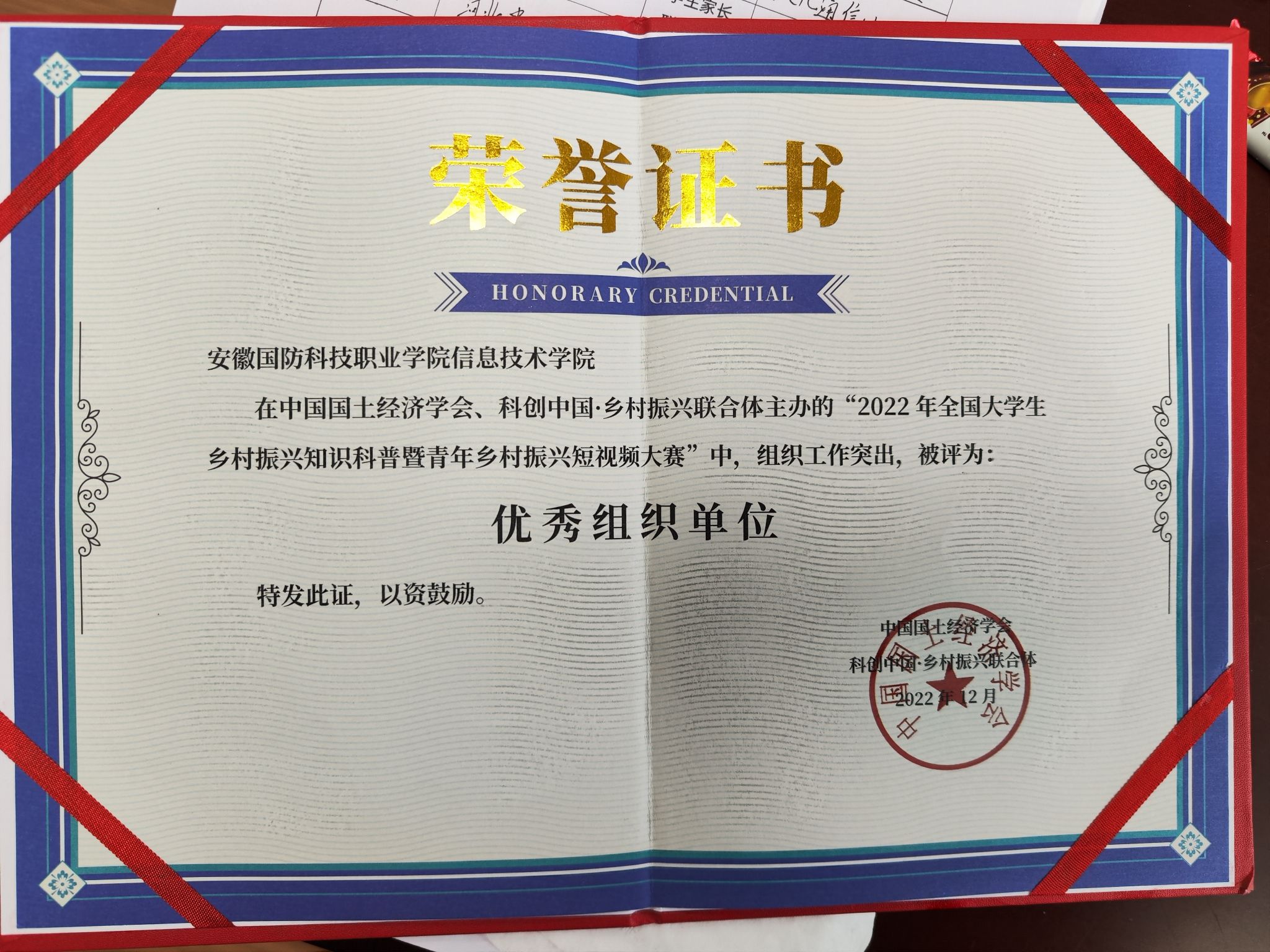 本网讯(信息技术学院 孙颖凯)2022年12月至2023年2月,在中国科协科普部的指导下,科创中国·乡村振兴联合体、中国国土经济学会主办的2022年“首届全国大学生乡村振兴知识科普暨青年乡村振兴短视频大赛”中,信息技术学院团总支联合计算机协会积极组织,精心筹备,在本次大赛中取得了优异成绩。