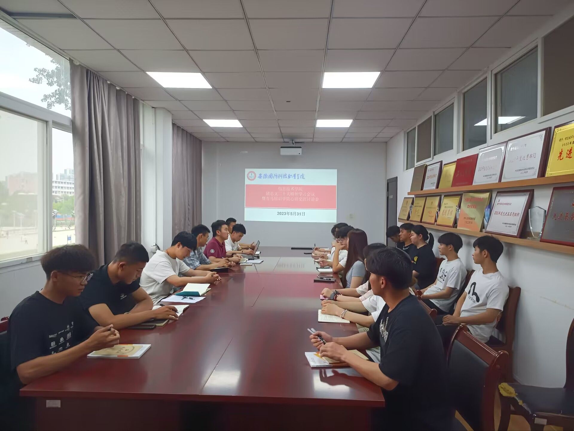 本网讯(信息技术学院 团总支)为了进一步深入学习贯彻党的二十大精神和习近平总书记对新时代青年的要求,培养优秀的青年马克思主义者,切实加强beat365共青团队伍建设,充分发挥青年学生干部的模范带头作用,提高我院学生干部的综合素质。信息技术学院团总支于5月31日晚在知行楼304会议室召开交流座谈会。学院团总支书记孙颖凯主持会议,学院本期“青马培训班”全体学员参加了本次座谈会。