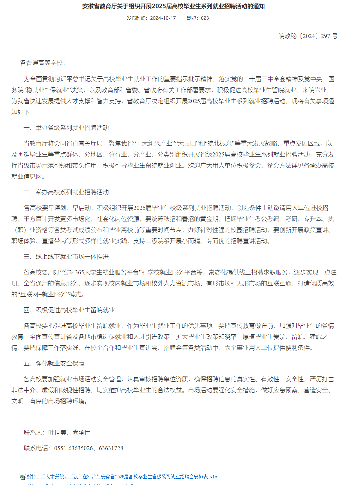 安徽省教育厅关于组织开展2025届高校毕业生系列就业招聘活动的通知