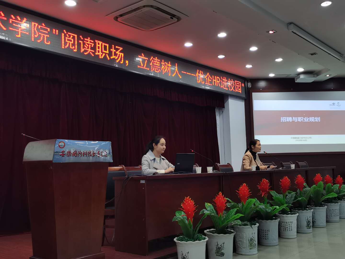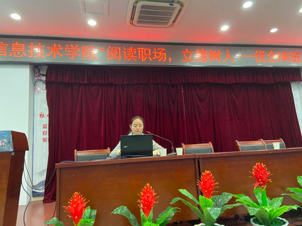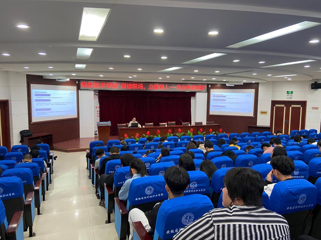 本场讲座是由中兴智慧城市学院主办的“阅读职场,立德树人----优企HR进校园”活动,第一场邀请了中国联通六安市分公司人力资源部经理杨梦彬女士为大家开讲。杨梦彬女士毕业于安徽大学电子信息工程专业,现任中国联通六安市分公司人力资源部经理,具有13年的人力资源领域工作经验,是国家二级人力资源管理师(中级)、二级劳动关系协调师(中级)。