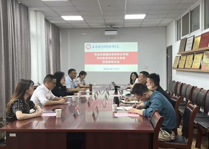 沙有闯对蔡红书记一行表示欢迎,并介绍学校的历史沿革、师资队伍以及信息技术学院的发展历史、学科建设、师资队伍、双高专业群建设等方面的基本情况。蔡红也详细介绍了安徽国际商务职业学院以及文化旅游学院的基本情况、主题教育开展情况、安徽省党建标杆院系建设、学生管理育服务的体制机制、专业建设和师资队伍建设等情况。
