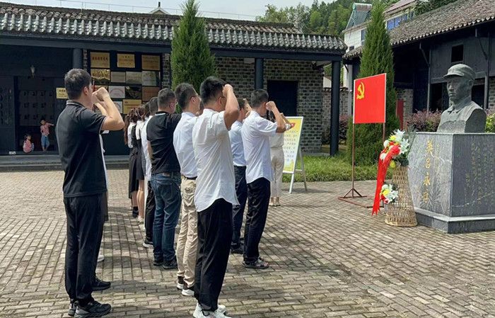 上午10时30分,全体党员怀着敬仰之情来到新四军四支队旧址纪念馆,向高敬亭雕像敬献花篮,缅怀革命先烈。在党员杨庆颖的领誓下,面向鲜红的党旗,庄严地举起右拳,重温入党誓词,铮铮誓言,彰显了各位党员同志的热血与忠诚。