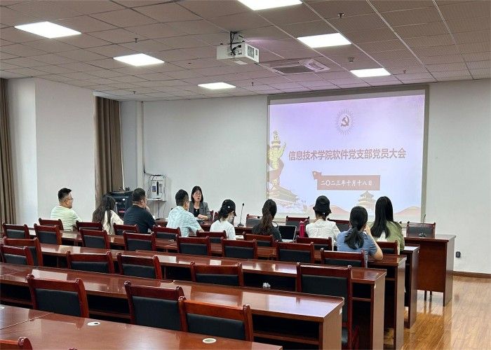 本网讯(信息技术学院 马士君)10月18日下午,信息技术学院软件党支部在902会议室召开全体党员大会,专题学习《中国共产党章程》,全体党员参加会议。会议由党支部书记朱小娟主持。