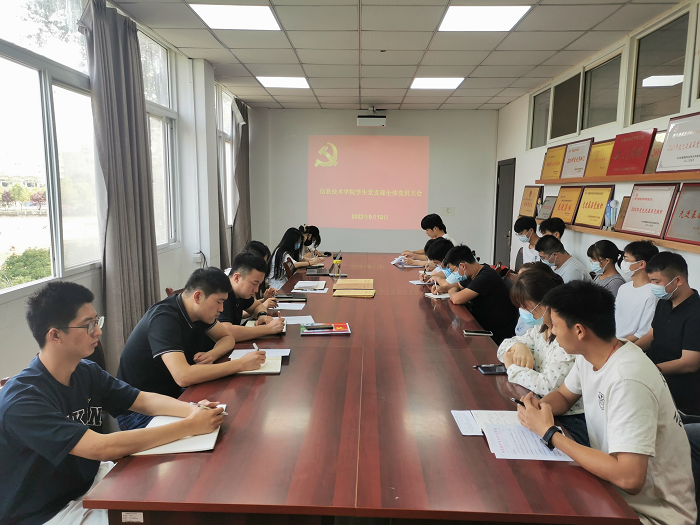 9月12日上午,信息技术学院学生党支部在知行楼309会议室召开预备党员转正大会,讨论关于接受汪世煜、刘祎、朱振鹏三位同志为中共正式党员事宜,会议由支部书记杨庆颖主持,党支部全体党员参加了会议。