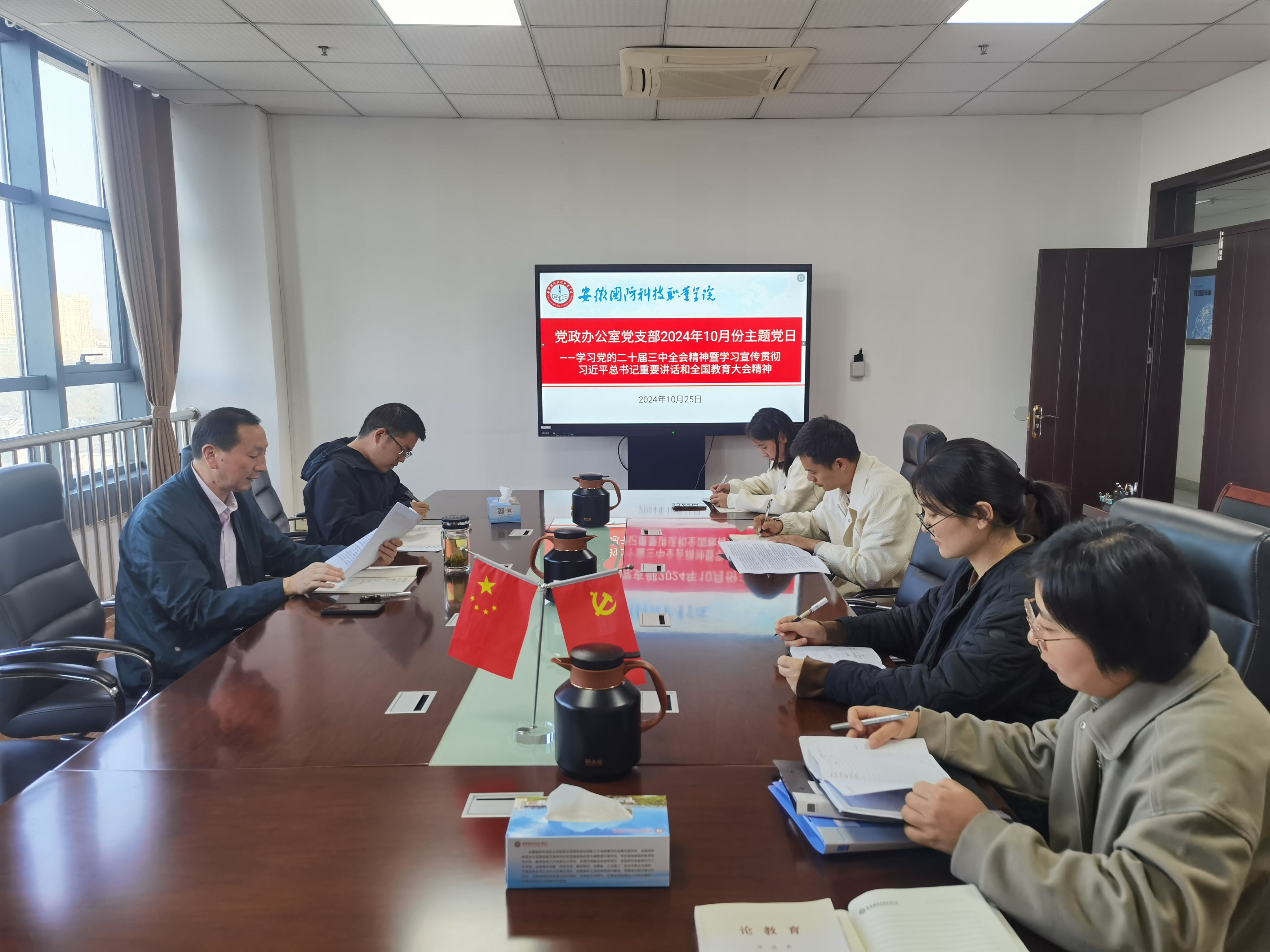 2024年10月25日,党政办公室党支部在党委会议室开展主题党日活动,深入学习贯彻党的二十届三中全会精神。会议由党支部书记李大武主持,全体党员参加学习。