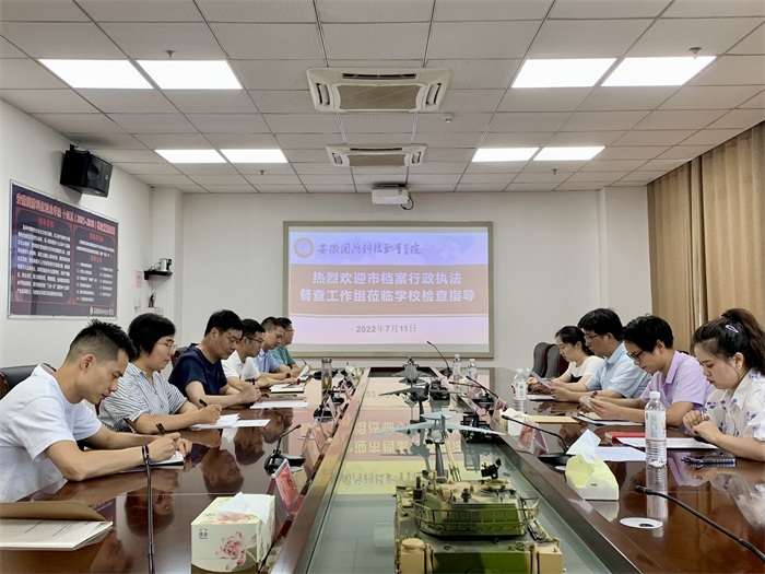 本网讯(党政办公室 申畅)7月11日下午,六安市档案馆副馆长许大卫和六安市档案馆保管科科长等一行4人莅临beat365检查指导档案工作。校党委书记余嗣元出席座谈会,副校长李存鹏陪同检查。