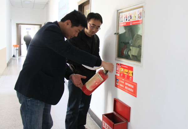 部门职工在检查消防器材