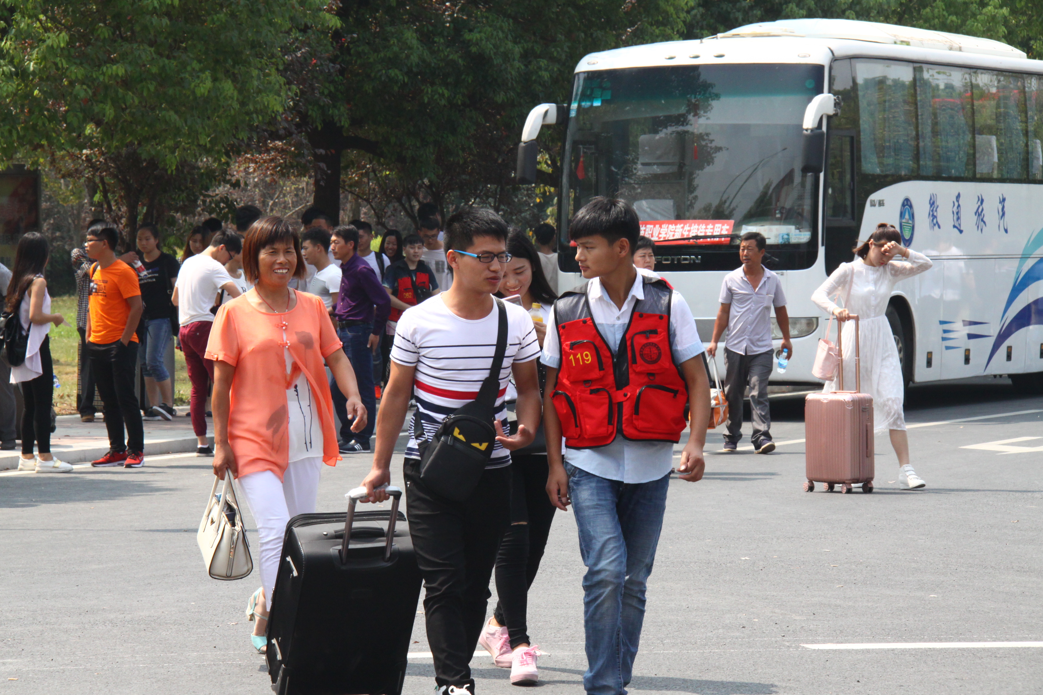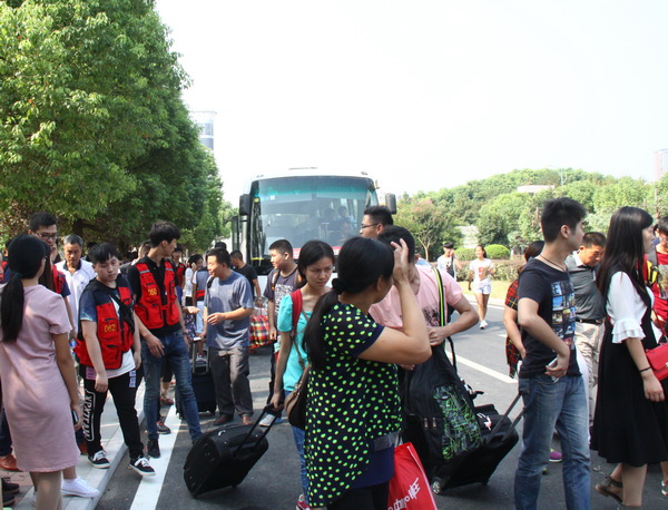 迎新专车到达学校,新生们开启大学追梦征程