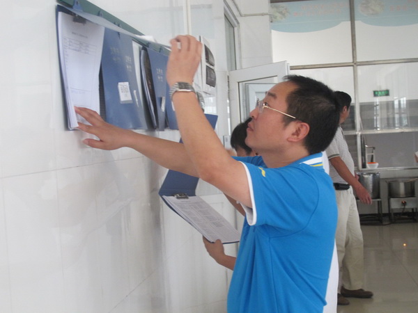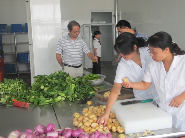 李麟书一行首先来到食堂后厨操作间,详细查看了环境卫生、生熟操作台的摆放。并对食堂管理人员说:“一定要严格遵守生熟食品分台加工,严格执行卫生操作程序,对于蔬菜等副食品要多次清洗,把好入口第一关。”还叮嘱工作时要佩戴手套和口罩进行规范操作。