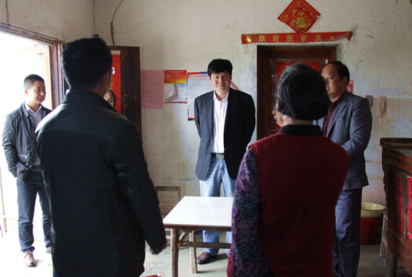 校党委书记余嗣元(中)走访贫困户