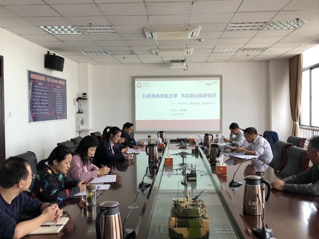 10月23日下午,一支部组织开展“不忘初心、牢记使命”主题教育党课。校党委委员李存鹏作题为《扎根革命老区办学,不忘初心砥砺奋进》专题党课报告。支部书记吴方庭主持会议,支部全体党员参加了会议。
