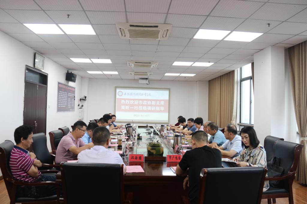 9月15日上午,六安市政协副主席黄昕带队来beat365调研产教融合实施情况,学校党委书记余嗣元、副校长李存鹏、教务处处长朱修传等同志参加调研座谈。