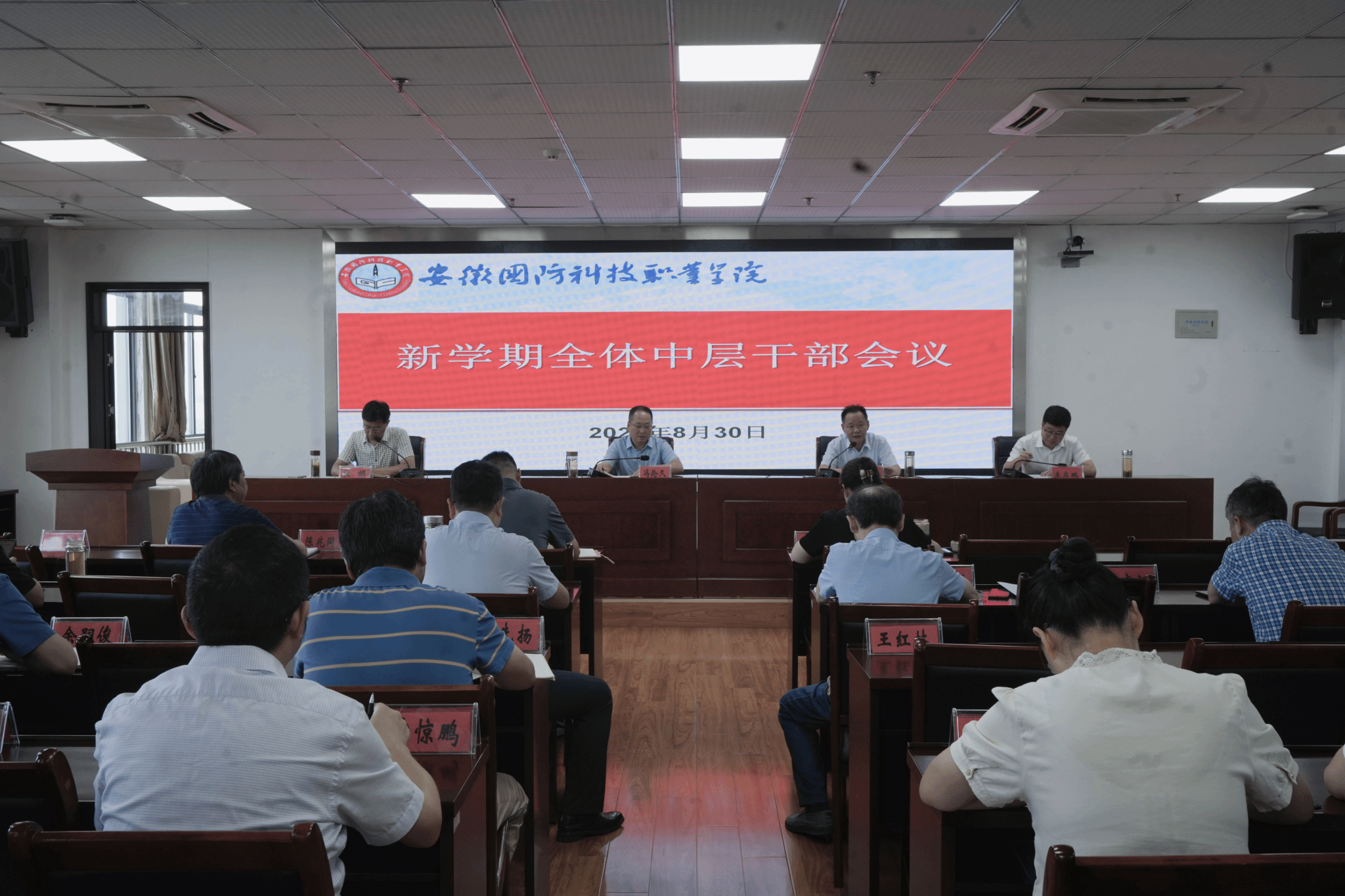 会上,副校长袁旗通报了上半年及暑期重点工作。他指出,在各单位、部门的共同努力下,较好的完成了“双高计划”创建、招生就业、教育教学、人才队伍、后勤保障等阶段性工作。他强调,与会干部要抓紧做好开学各项准备工作,为师生返校营造良好的学习、生活环境;要深入推进平安校园建设,切实维护学校安全稳定。
