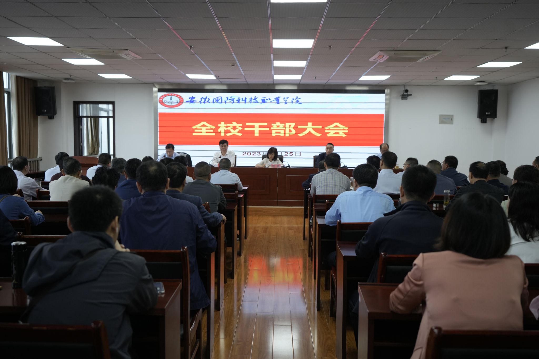 9月25日,学院在秉心楼12楼会议室召开全校干部大会,宣布省委关于学院主要领导调整的决定。省发展和改革委党组成员、副主任钟岚出席会议并讲话,省委军民融合办副主任陈剑宣读省委决定,会议由学院党委书记余嗣元主持。