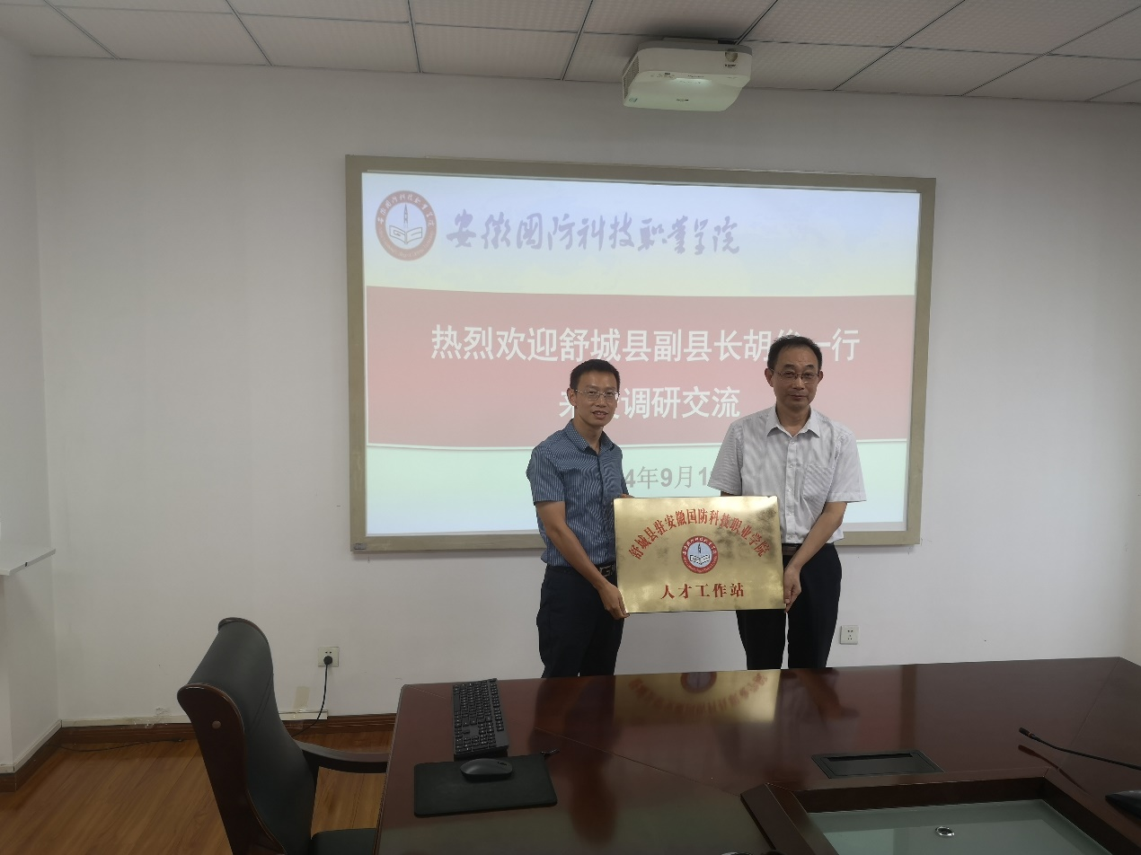 9月11日上午,舒城县副县长胡俊一行来校调研学校人才培养相关工作。学校党委副书记冯伦久,党委委员、副校长付贤政等热情的接待了来宾,并在秉心楼第一会议室举行了座谈会。