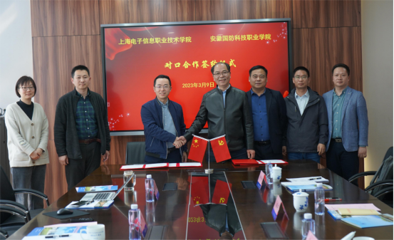 上海电子信息职业技术学院党委副书记、院长赵坚介绍了学校发展规划、办学定位、人才培养、社会服务等整体情况。双方就党建与思政教育、管理能力提升、人才培养、师资队伍、国际合作、科研与社会服务等方面进行了深入交流,并签署了《共同推动革命老区职业教育高质量发展对口合作协议书》。