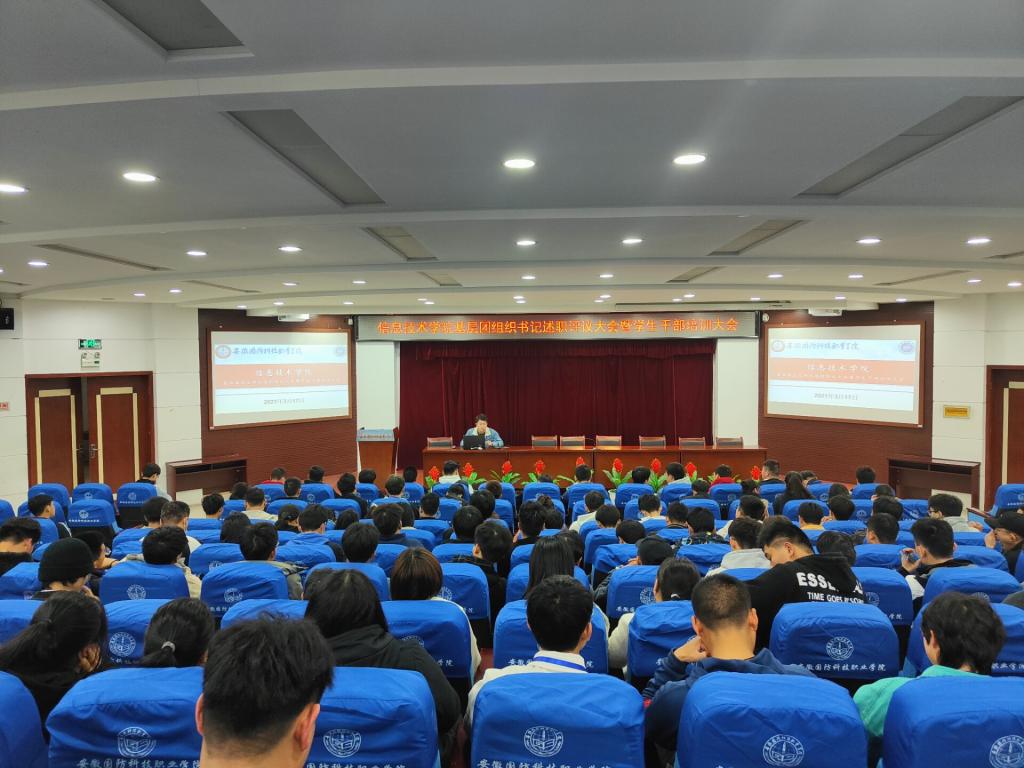 为深入贯彻落实上级关于从严治团的指示精神,推动基层班级团支部各项工作有效开展,根据校团委的工作部署,3月17日下午16:00,信息技术学院团总支在图书馆报告厅举行2020年度基层团支部书记述职评议会暨学生干部培训大会,学院辅导员兼团总支负责人孙颖凯老师、团总支委员、各班团支部书记、各班班长、团总支学生会部分学生干部参加会议。