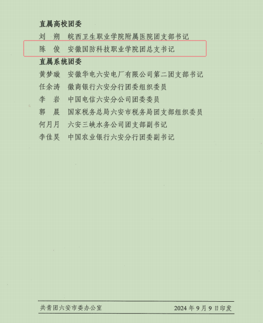 电气技术学院团总支书记陈俊获“六安市共青团干部”荣誉称号