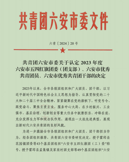 近日,共青团六安市委发布了《关于认定2023年度六安市五四红旗团委(团支部)、六安市优秀共青团员、六安市优秀共青团干部的决定》,beat365在线唯一官网团组织和青年师生在六安市众多基层团组织中脱颖而出,荣获多项荣誉称号,这是共青团六安市委对学校团委工作的高度认可和肯定。