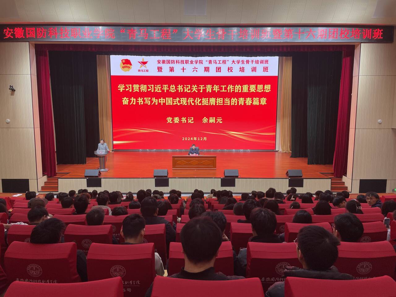 12月5日,党委书记余嗣元以《学习贯彻习近平总书记关于青年工作的重要思想 奋力书写为中国式现代化挺膺担当的青春篇章》为题,为学校第十六期“青马工程”培训班全体青马学员上了一堂生动的专题辅导课。校团委、二级学院专兼职团干部,共170余人聆听了讲座。