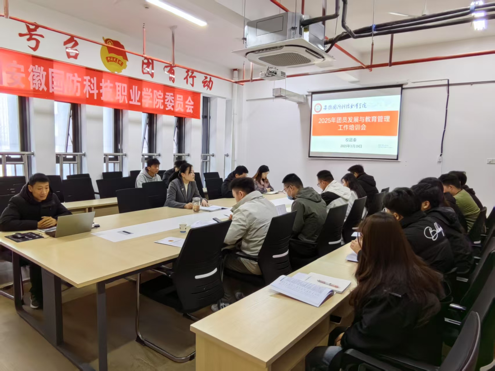 为规范团员发展程序,全面提升团员发展质量,推进共青团工作规范化建设。3月19日上午,校团委在团委会议室召开2025年度团员发展教育管理工作培训会,学校全体专兼职团干部参加会议,会议由团委副书记张凤主持。