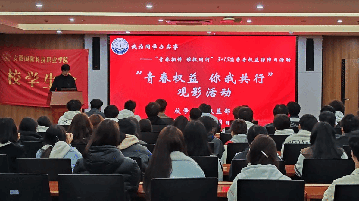 ‘权’心‘权’意,光影筑盾 3月15日晚,校学生会权益部在产教第一报告厅通过观看央视《2025年3•15晚会》直播,让同学们了解消费者被欺骗的陷阱和欺诈手段以及如何维护自身权利,重视食品安全,警惕新型诈骗。