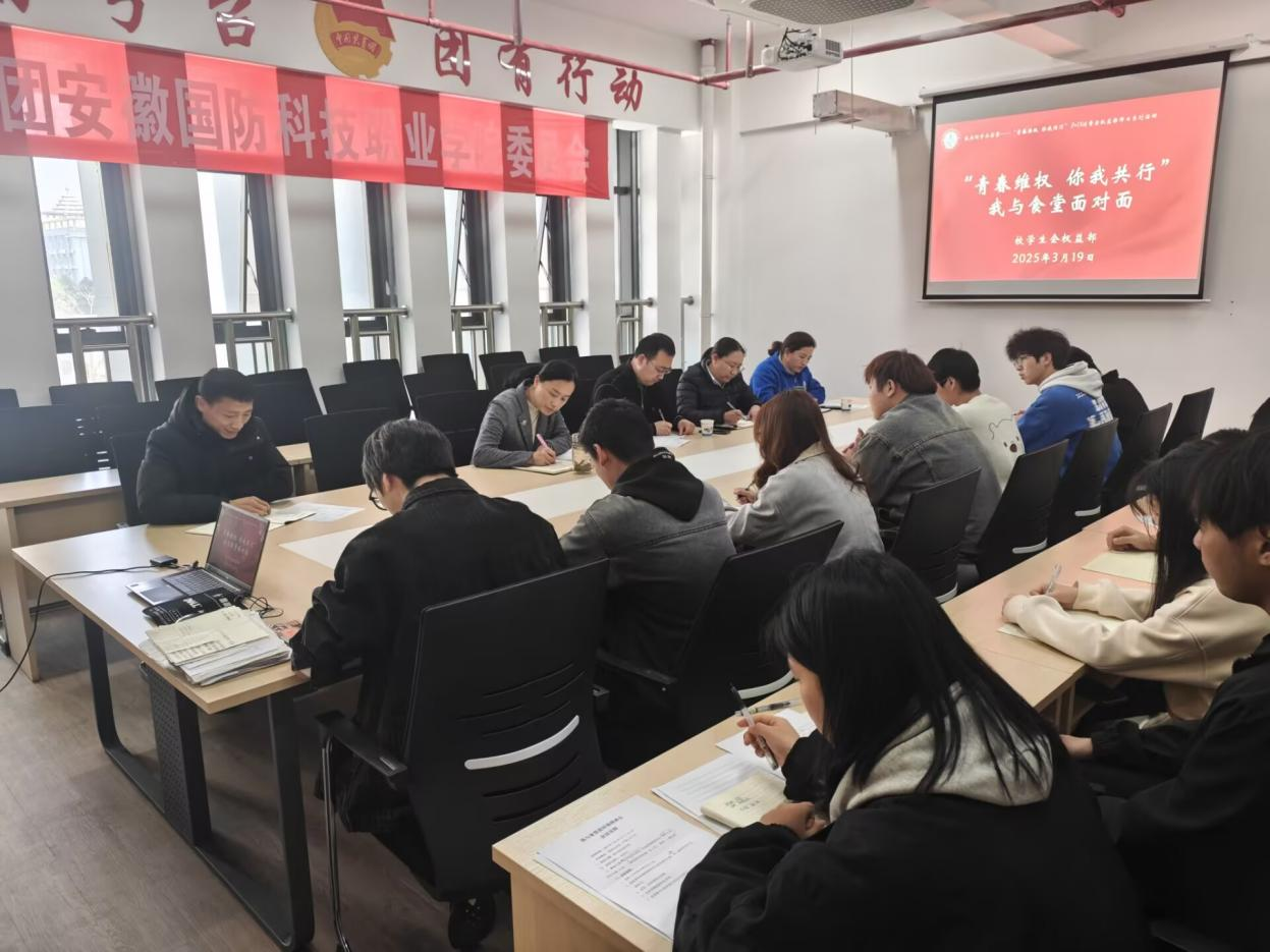 知权维权,共筑校园 3月19日下午,校学生会权益部与总务处及食堂举办“我与食堂面对面”座谈会,来自各二级学院的学生代表们积极发言,现场提出对学校食堂的建议与反馈。总务处处长杨旄袤强调“食品安全大于天”,承诺在后续食堂工作中会做到“事事有回应,件件有着落。”最后,校团委副书记张凤总结时指出,学校、食堂和学校管理伙食委员会(学生)成员要加强联系、互相合作,力求改善和维护学生最大权益。此次会议提升了学生的权益意识,拓宽了维权途径,并促进了学校与学生的良好互动,为和谐校园建设打下基础。