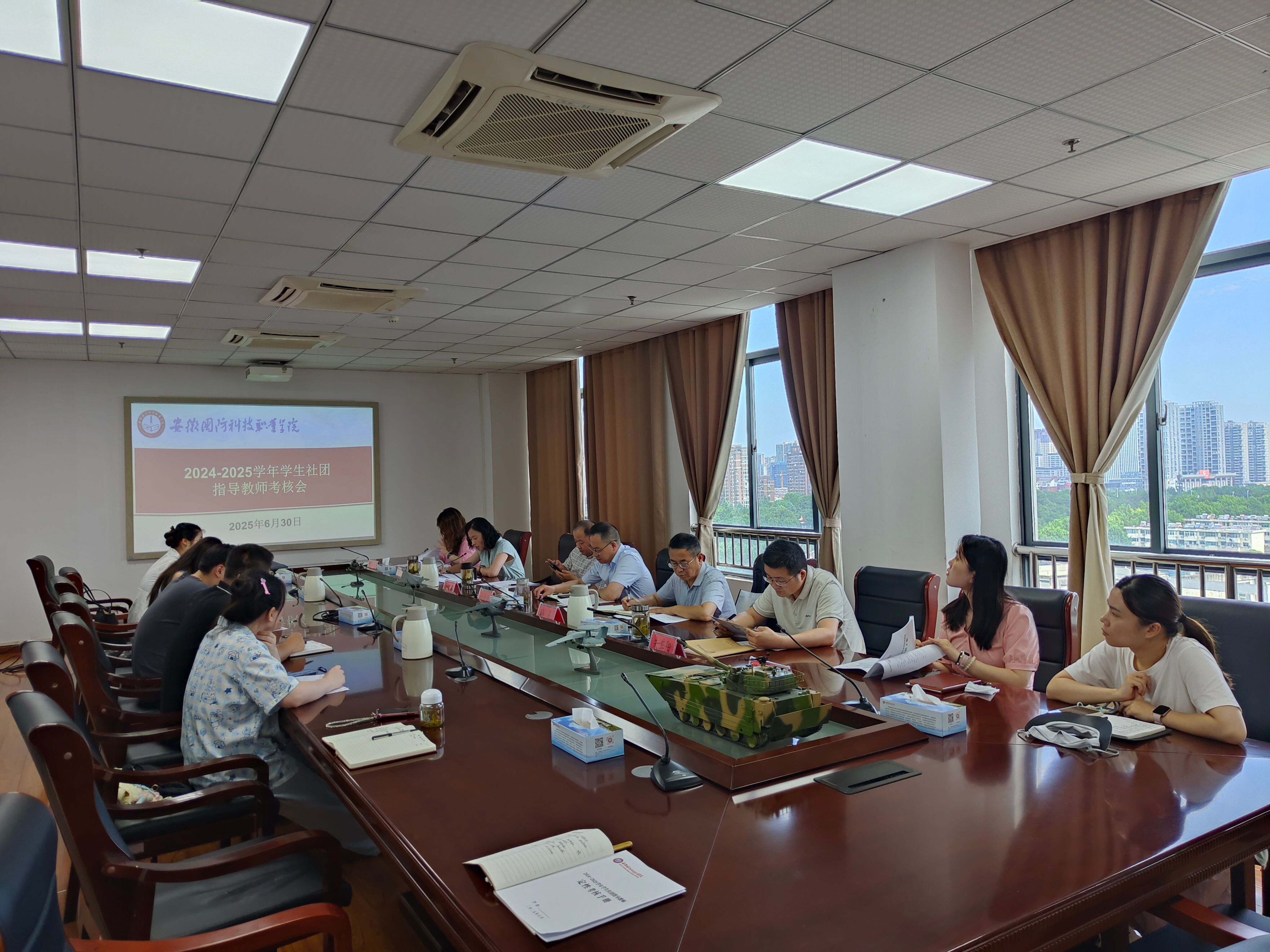 6月30日上午,2024-2025学年学生社团指导教师考核会在秉心楼第一会议室举行。党委委员、副院长付贤政,组织人事处、学生处、教务处、团委、各二级学院团学工作负责同志作为评委参加了本次考核会。