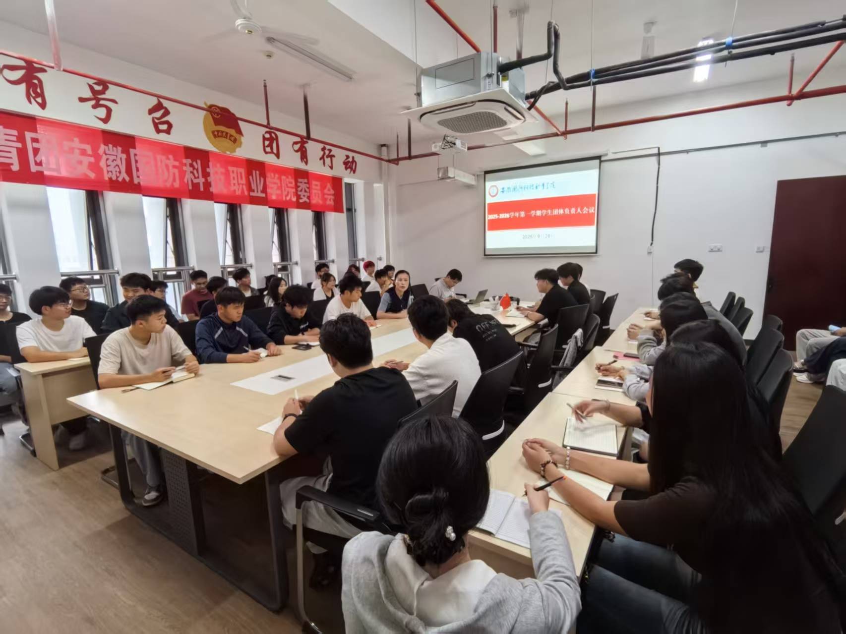本网讯 9月28日下午,校团委在产教融合中心A区301会议室顺利组织召开学生团体负责人会议。校团委副书记张凤主持会议,校院两级学生会、各学生组织、社团负责人等50余人参会。