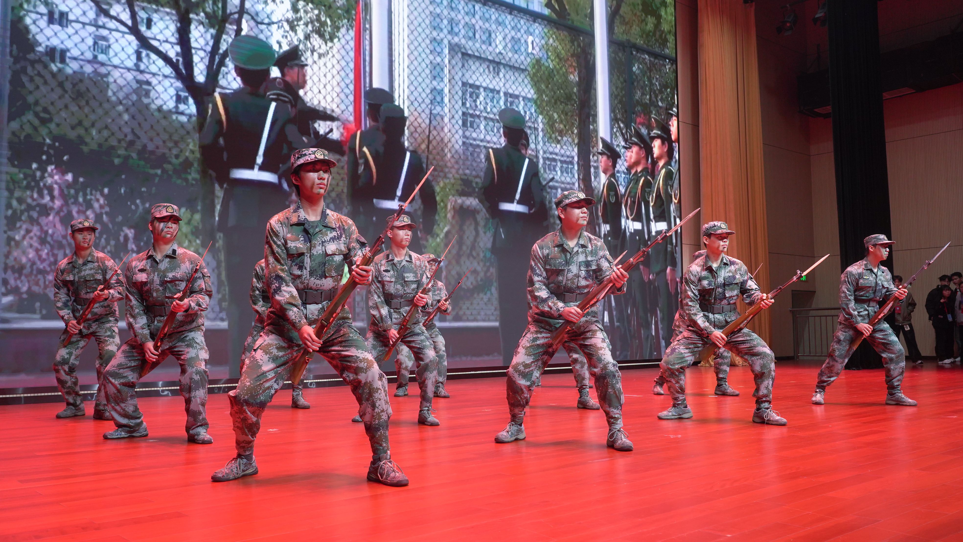 小品《谁杀死了周日》聚焦拖延顽疾,以幽默形式深刻反思时间管理,诠释青春思考;刺杀操《热血军魂》铮铮铁骨,气势如虹,以刚健动作与震天呐喊,展现昂扬风貌与爱国热忱。朗诵《月光下的中国》以青春之声传递爱国热忱,展现新时代青年的使命与担当。