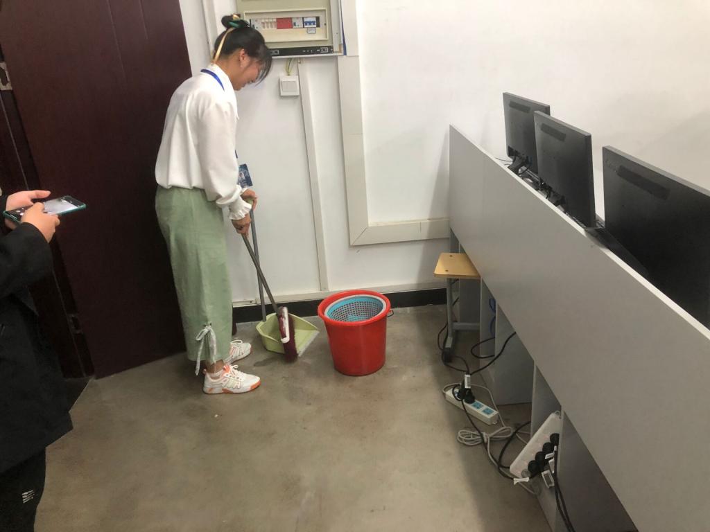 在本次志愿打扫的过程中,动漫协会的干事不分部门,不分你我,互相帮助。首先清理机房上遗留的桌面垃圾,然后使用抹布将机房桌面清理干净,最后打扫机房的地面卫生并将垃圾打包带走。本次志愿打扫机房卫生,引导了同学们树立正确的劳动观,同时也让他们意识到团队作用和社团的凝聚力。