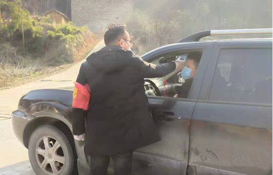 这个正月,金寨县梅古公路兴田村段每天都可以看到的这样一幕,一个憨厚的小伙子带着“红袖标”拿着体温枪打着靠边停车的手势,耐心的排查和劝导过往人员,同时宣传一些病毒的防控知识:“你好!停下车摇下车窗,来测下体温!这个病毒传染性非常强,只有在家自我隔离,少接触人才不会有机会被感染。”