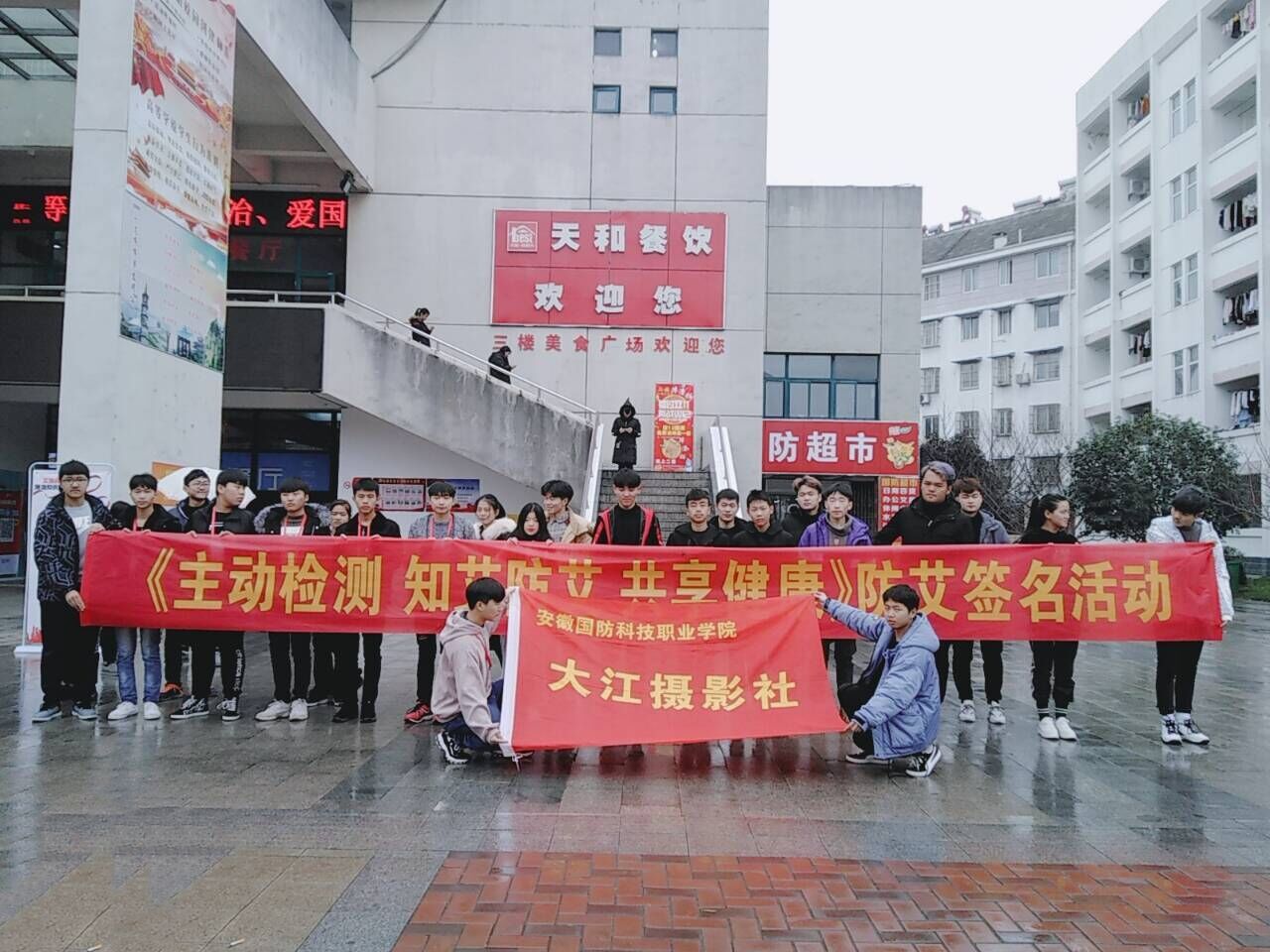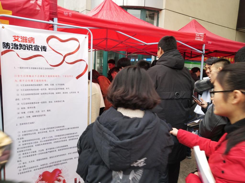 当天上午,大江摄影社的志愿者们早早的在校园食堂门口进行摆台宣传,来往的同学驻足留步,拿起宣传单页了解预防艾滋病知识,留下对防治艾滋病、关爱艾滋病人的祝福,并领取免费礼品。