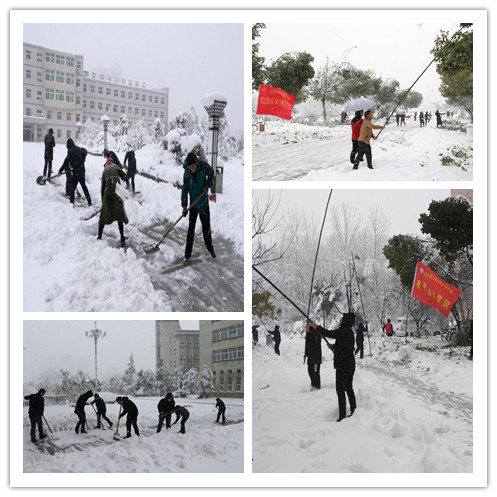 各二级学院学生也自发组织了义务除雪活动,虽然天气寒冷,大雪纷飞,但同学们个个忙得热火朝天。