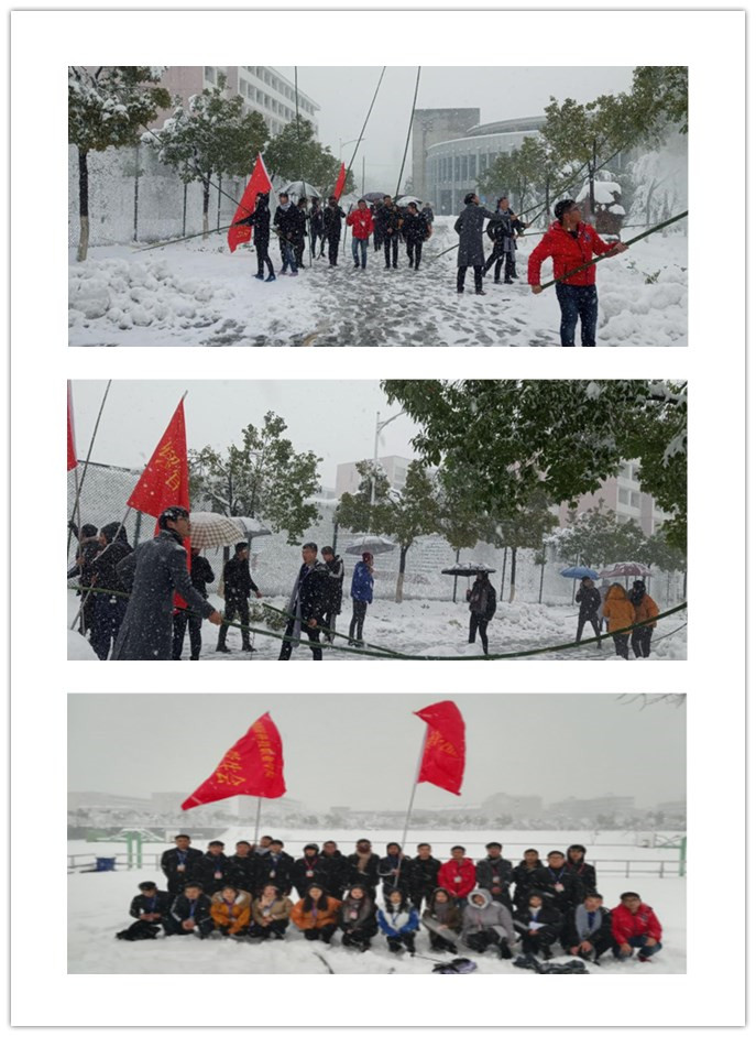 本网讯(经贸管理学院 付玉梅)六安1月3日迎来入冬以来的第一场降雪,美丽的校园裹上一袭“银装”,为国防师生的学习与生活平添了许多乐趣与色彩。但降雪也同样给师生出行造成了不小的麻烦与不便,同时积雪也压断了学校部分景观树,积雪妨碍了车辆、师生的正常活动。1月4日,beat365在线唯一官网经贸管理学院团总支学生会全体成员同学校职工及物业人员在校园内组织并开展了除雪活动。