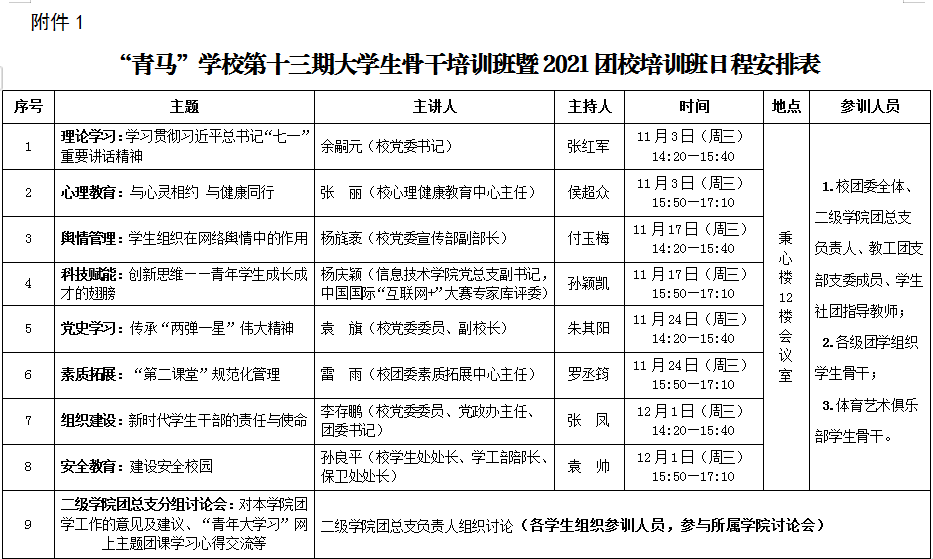 2021年校级“青马工程”学员共94人,培养方案或计划文件(见附件1)。