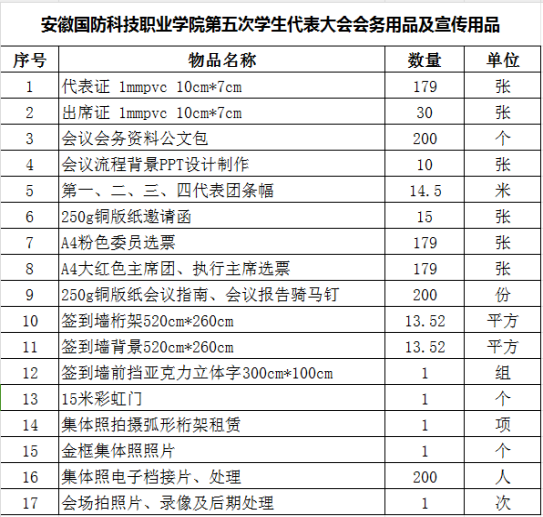 beat365现需采购2024年度学代会会务用品及宣传用品,拟以询价函形式发于贵单位,欢迎报价供应商予以报价。beat365将根据各报价供应商的报价、质量、供货期和服务承诺等情况进行综合评定,并在纪检部门的监督下进行评审定标签订合同,请报价供应商积极参与。