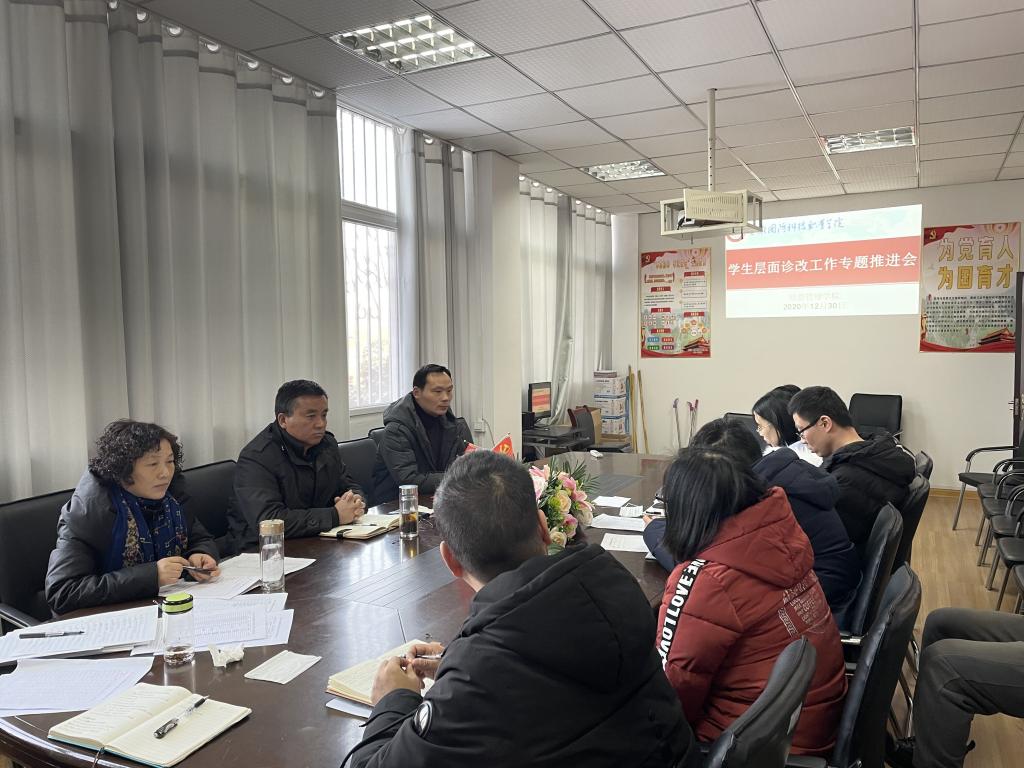 最后,杜先扬强调,全体学工人员要以诊改工作为契机,树立以学生为中心的理念,进一步规范班级工作,要结合学生实际,通过诊改抓症结、补短板,总结完善成班级管理特色;要明确目的、明确重点、明确程序,严格按时间节点完成任务,不断完善学生诊改工作,提高学生管理工作水平提升人才培养质量。
