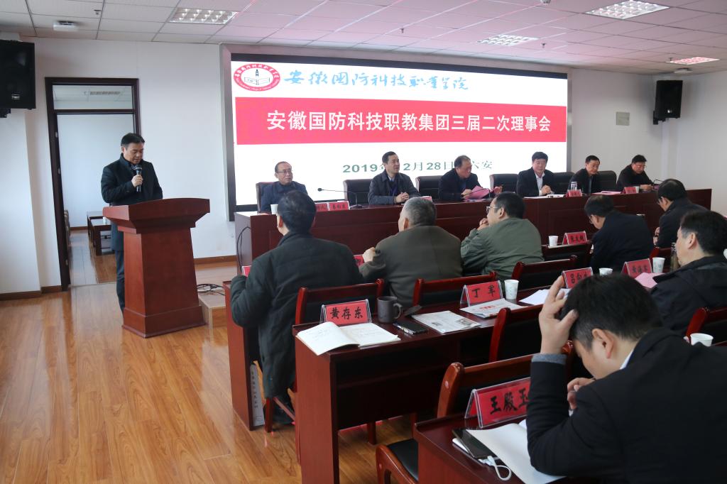 为深入贯彻落实《教育部关于深入推进职业教育集团化办学的意见》等文件精神,完善集团运行机制,促进集团内成员间的交流与沟通,深化产教融合、校企合作。2019年12月28日,在beat365在线唯一官网秉心楼十二楼会议室成功召开了安徽国防科技职业教育集团三届二次理事会。