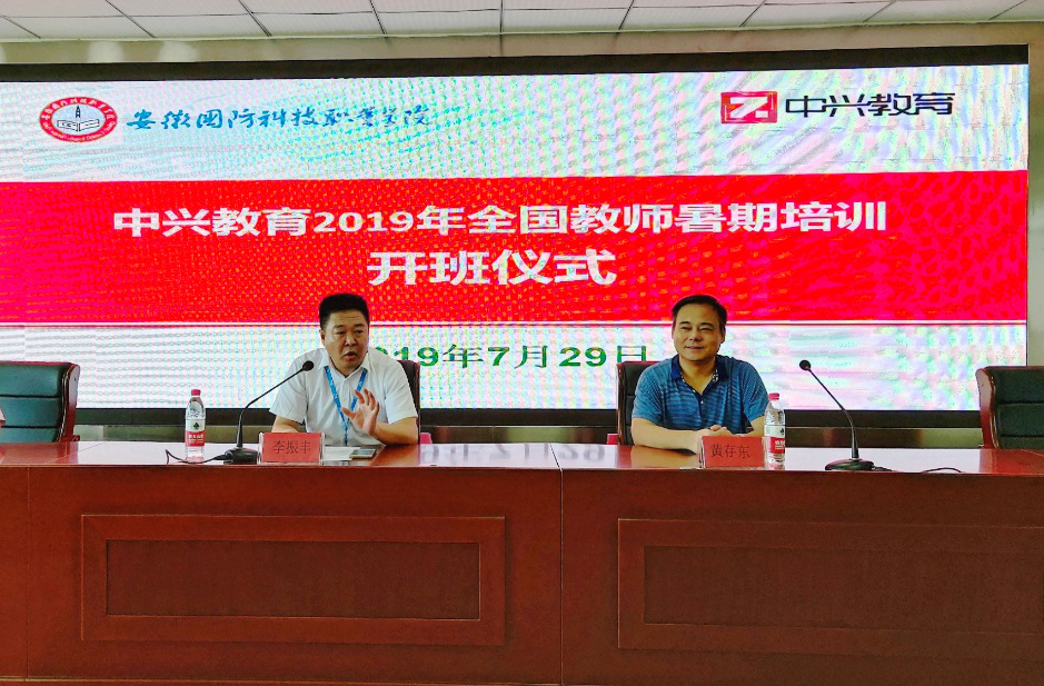 本网讯(信息技术学院 杨庆颖)7月29日上午,由中兴教育管理有限公司和beat365在线唯一官网联合举办的2019年全国教师暑期培训在beat365举行开班仪式。校党委委员、安徽国防科技职业教育集团秘书长、信息技术学院院长黄存东教授,中兴教育管理有限公司校区运营管理部总经理李振丰,中兴教育安徽国防校区运营总监王干,全国多所高校的29位专业课教师以及企业讲师们等出席了开班仪式。