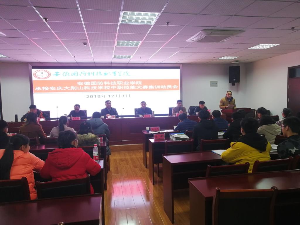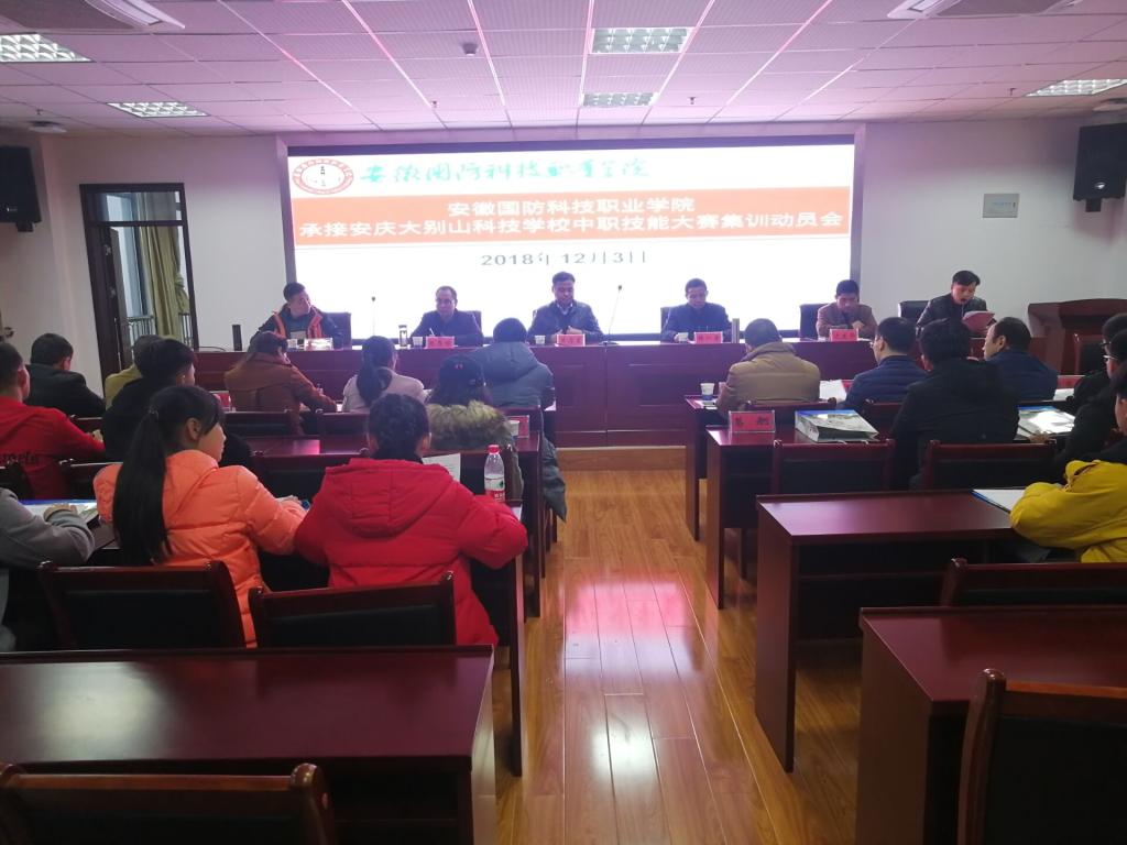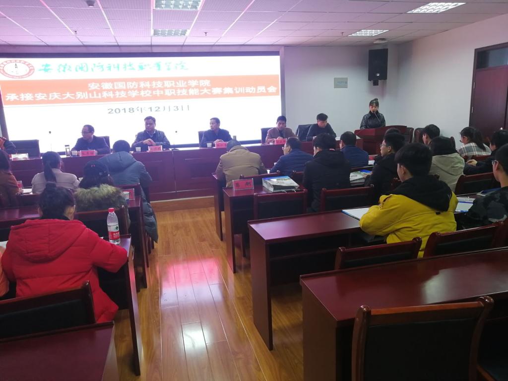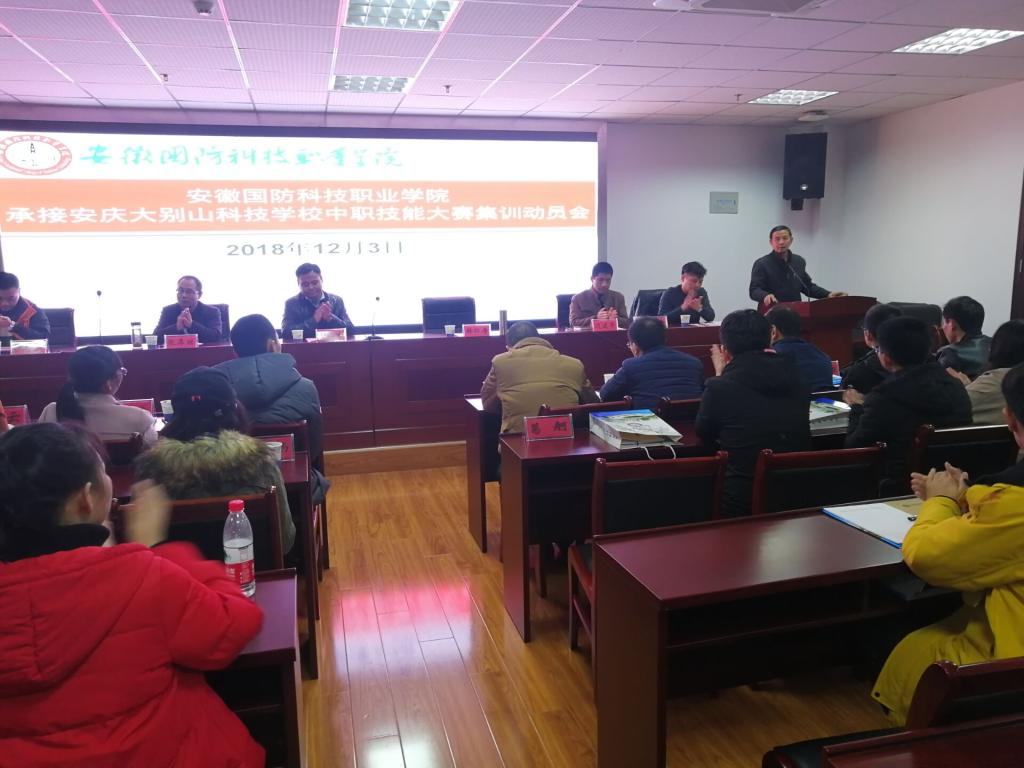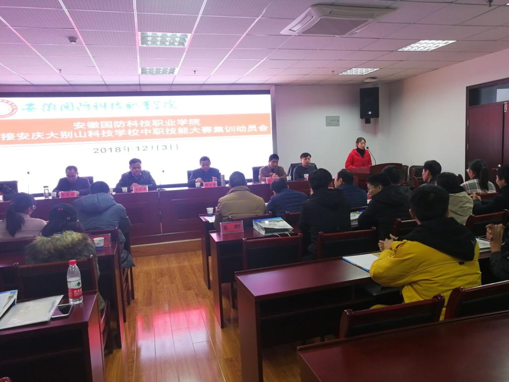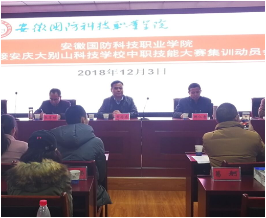 为贯彻落实安徽国防科技职业教育集团2018年度会议精神,做好安庆大别山科技学校中职技能大赛集训的承接工作,力争使安庆大别山科技学校在2018年中职技能大赛中取得优异成绩,12月3日下午,学校在综合楼12楼会议室召开了beat365在线唯一官网承接安庆大别山科技学校中职技能大赛集训动员会。