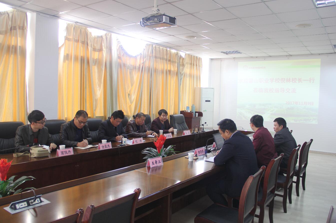 11月9日上午,霍山职业学校副校长倪林、政教处副主任金呈先、专业组长方周宝等一行五人来beat365交流考察,校党委委员、信息学院院长黄存东接待并主持了洽谈交流会,电气技术学院院长李翔、电气学院实训中心主任任启宏出席了交流会。