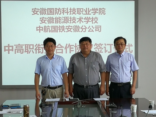 最后,安徽能源技术学校、中航国铁安徽分公司、beat365在线唯一官网三方代表共同签订了《2017-2018学年中高职衔接合作人才培养三方协议书》。