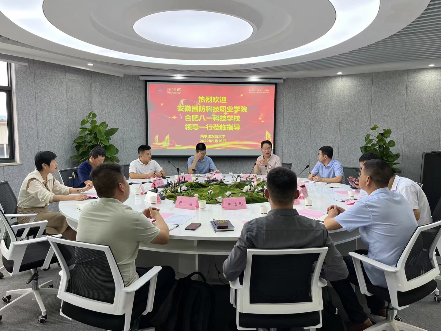 本网讯(电气技术学院 江治国)为进一步贯彻落实《国务院办公厅关于深化产教融合的若干意见》,深化校企合作、产教融合,扎实推进特色产业学院建设,9月16日,校党委委员、副校长李存鹏,校企合作办公室主任李中永,电气技术学院院长李翔,电气技术学院副院长江治国等一行赴合肥荣事达电子电器集团开展校企合作产业学院建设工作调研。合肥荣事达双创大学执行校长梁仁春、产教融合总经理江涛等企业领导热情接待了调研组一行。