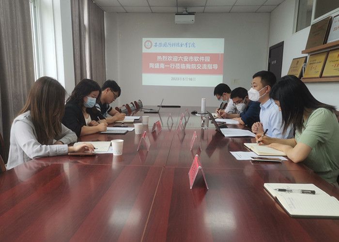 首先,沙有闯对六安市软件园领导的到访表示欢迎,并从学校概况,办学理念,办学特色等方面介绍了学校情况。双方就人才培养、毕业生实习就业、师资互派、科研共建共享等方面搭建产学研用平台进行了深入的交流。