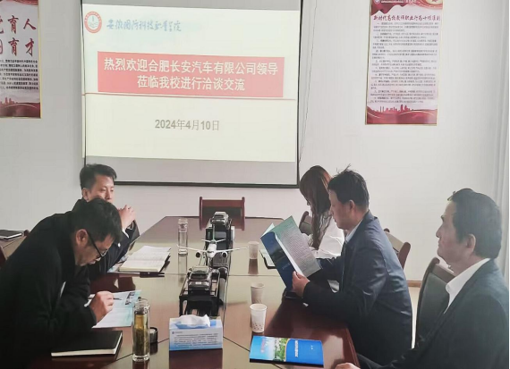 本网讯(汽车技术学院 黄世超)为了进一步推动产教融合工作的协同创新,开创校企合作共赢、共谋发展的良好局面,4月10日上午,集团成员单位合肥长安汽车有限公司人力资源处袁维民处长一行赴beat365在线唯一官网洽谈合作,国防学院汽车技术学院副院长(主持工作)姜继文、汽车技术学院党总支副书记余桂刚,就业辅导员黄世超参加座谈会。